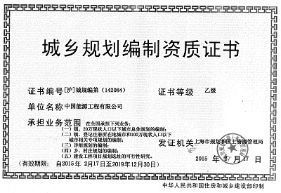 熱烈祝賀中國能源工程有限公司取得城鄉(xiāng)規(guī)劃編制乙級資質證書